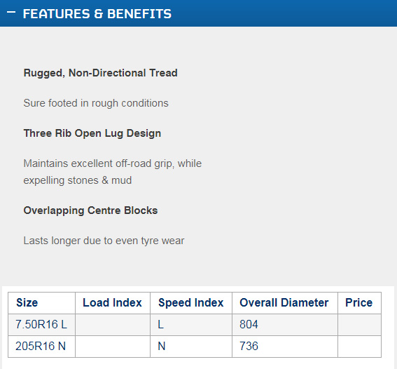 | Size | 750 R 16 / 10 |