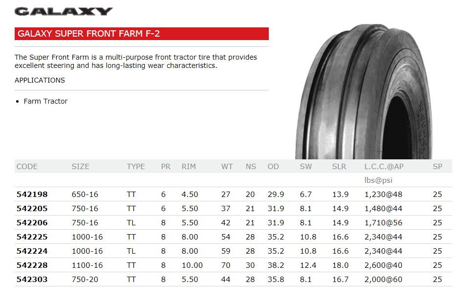 The Super Front Farm is a multi-purpose front tractor tire that provides excellent steering and has long-lasting wear characteristics.